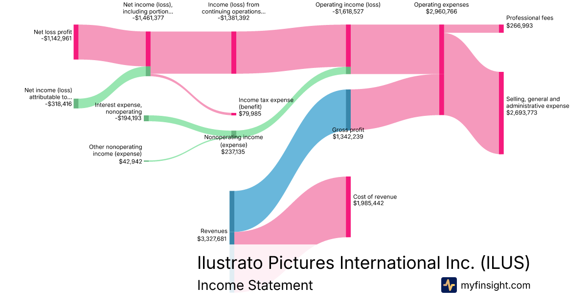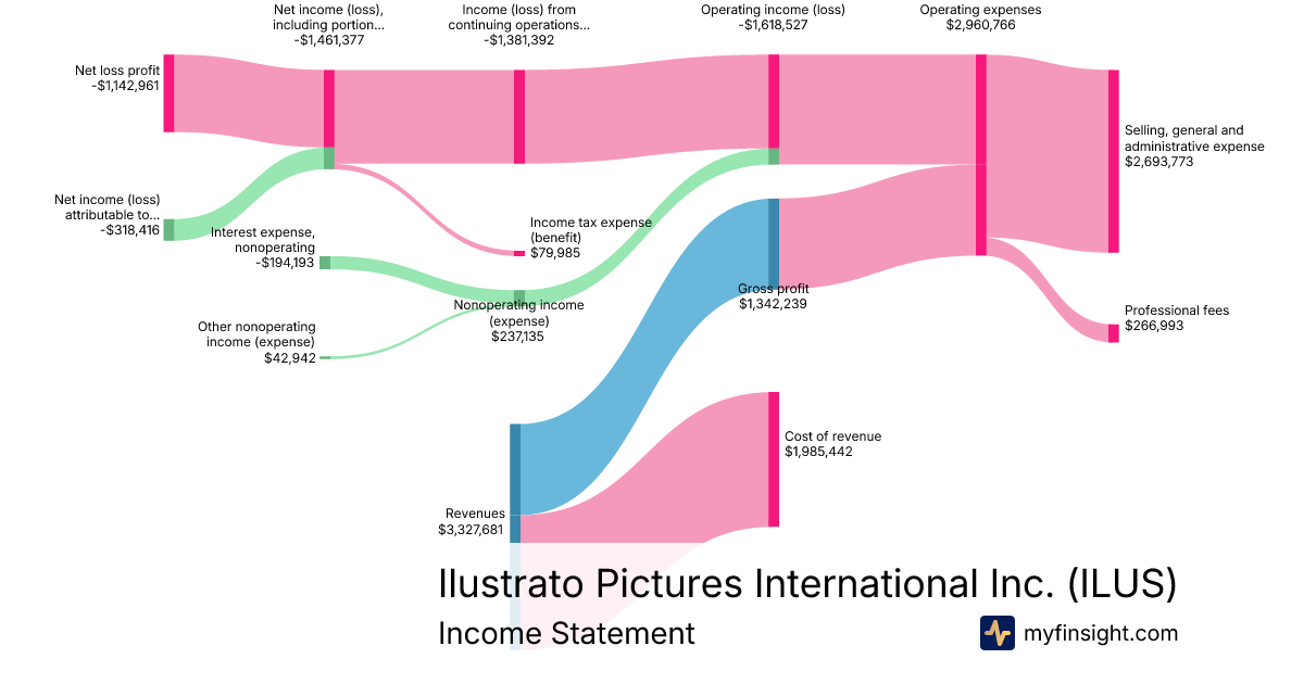 For the quarter ending 2024-09-30, ILUS made $3,327,681 in revenue. -$1,142,961 in net income. Net profit margin of -34.35%.