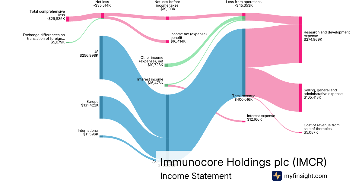 For the year ending 2025-12-31, IMCR made $400,016K in revenue. -$29,835K in net income. Net profit margin of -7.46%.