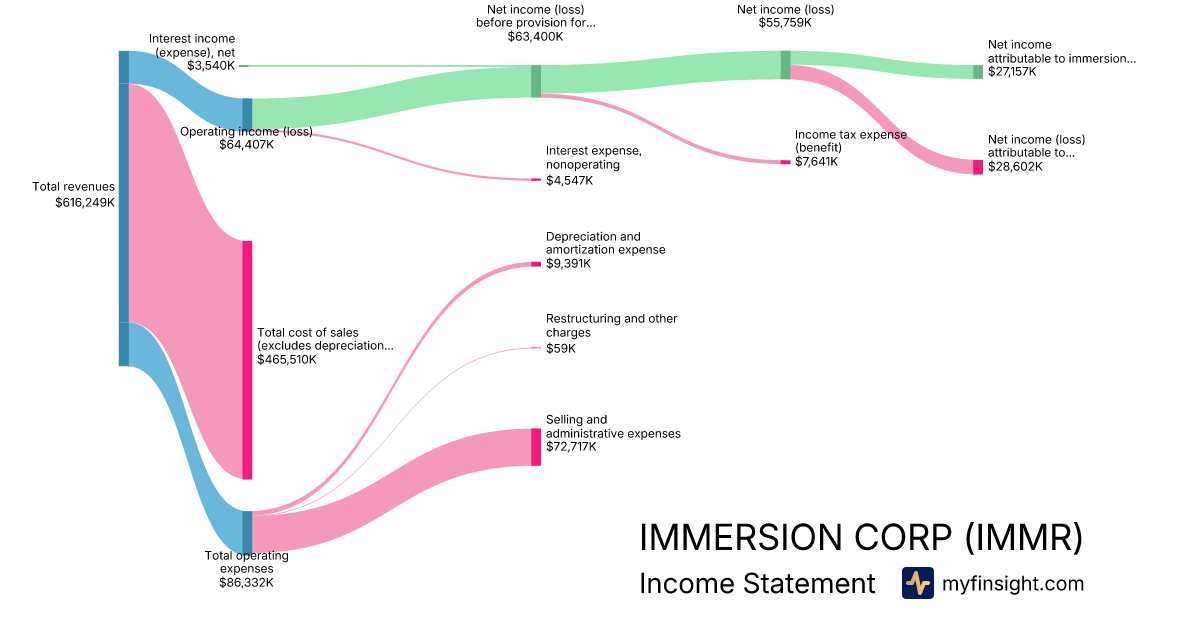 For the quarter ending 2024-10-31, IMMR made $616,249K in revenue. $27,157K in net income. Net profit margin of 4.41%.