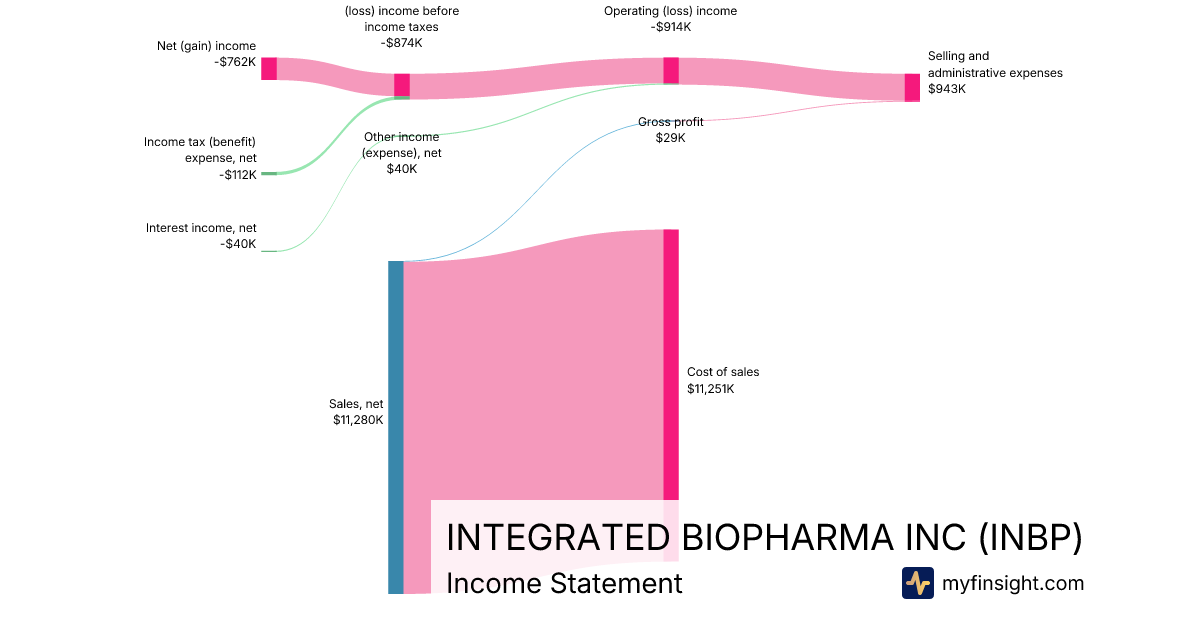 For the quarter ending 2025-12-31, INBP made $11,280K in revenue. -$762K in net income. Net profit margin of -6.76%.
