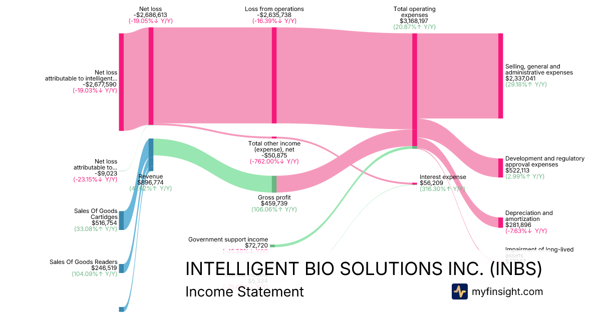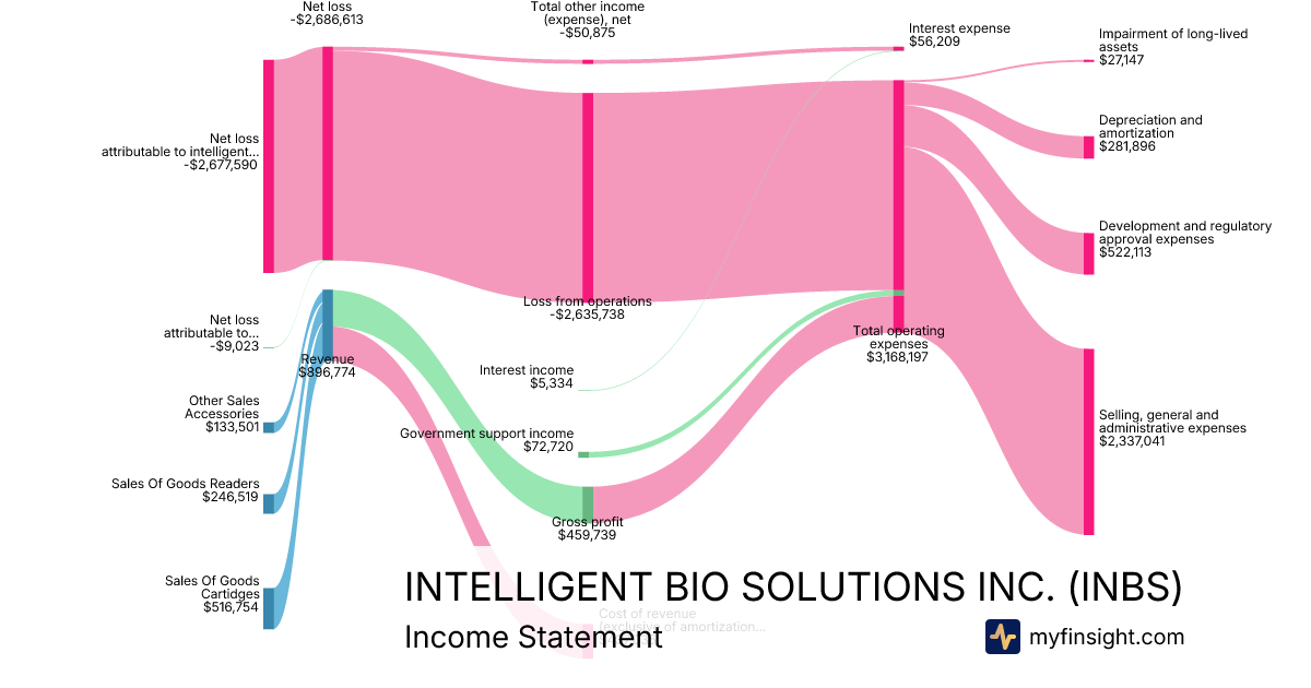 For the quarter ending 2025-12-31, INBS made $896,774 in revenue. -$2,677,590 in net income. Net profit margin of -298.58%.