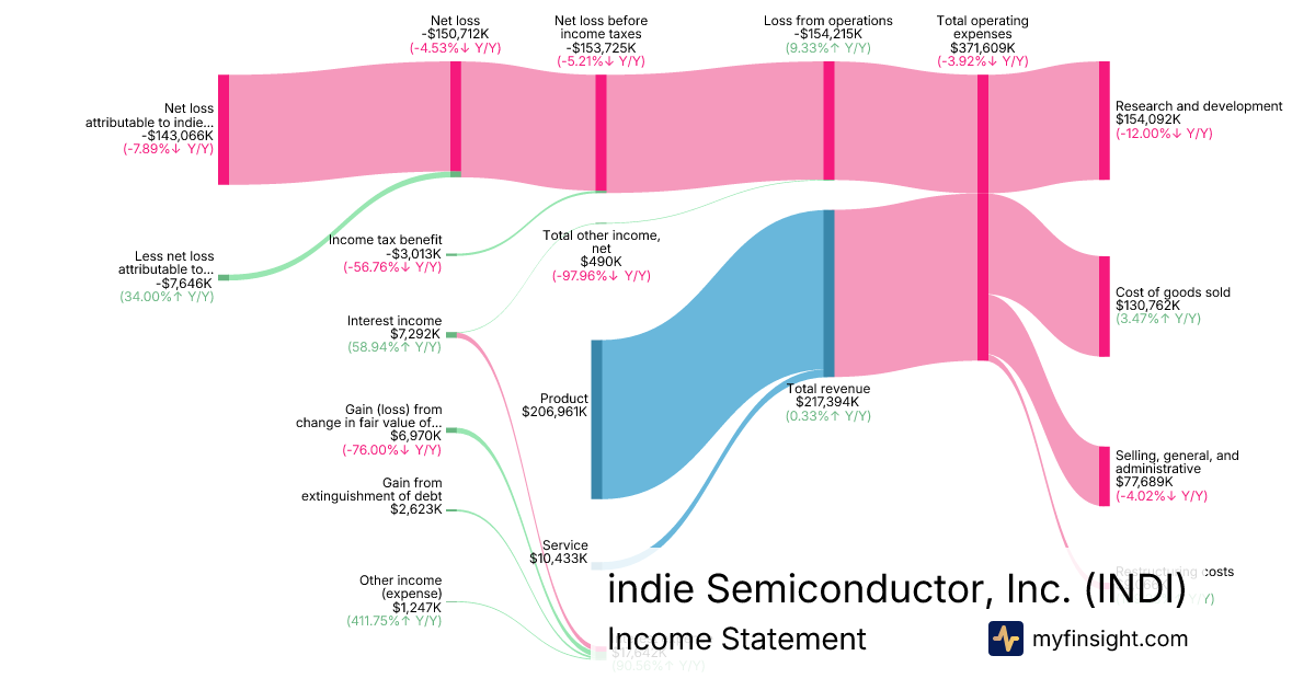 For the year ending 2025-12-31, INDI made $217,394K in revenue. -$143,066K in net income. Net profit margin of -65.81%.
