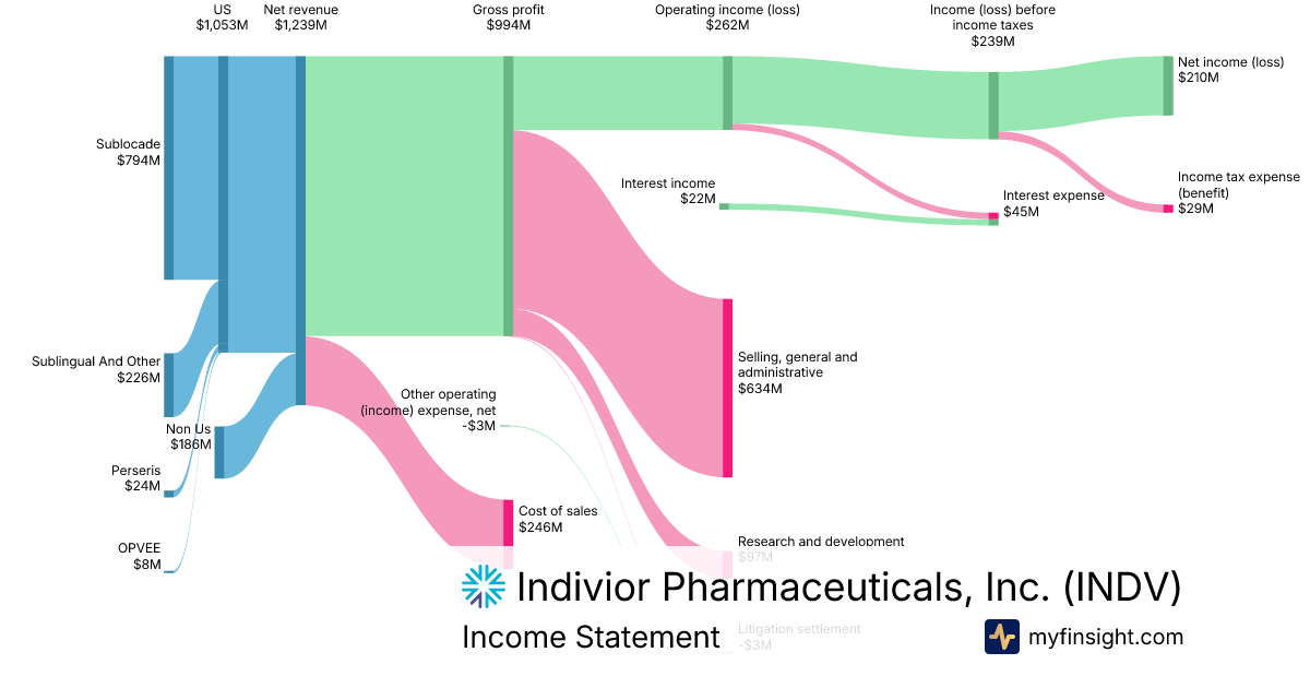 For the year ending 2025-12-31, INDV made $1,239M in revenue. $210M in net income. Net profit margin of 16.95%.