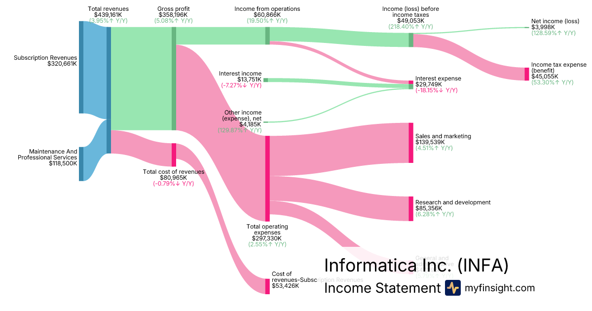 For the quarter ending 2025-09-30, INFA made $439,161K in revenue. $3,998K in net income. Net profit margin of 0.91%.