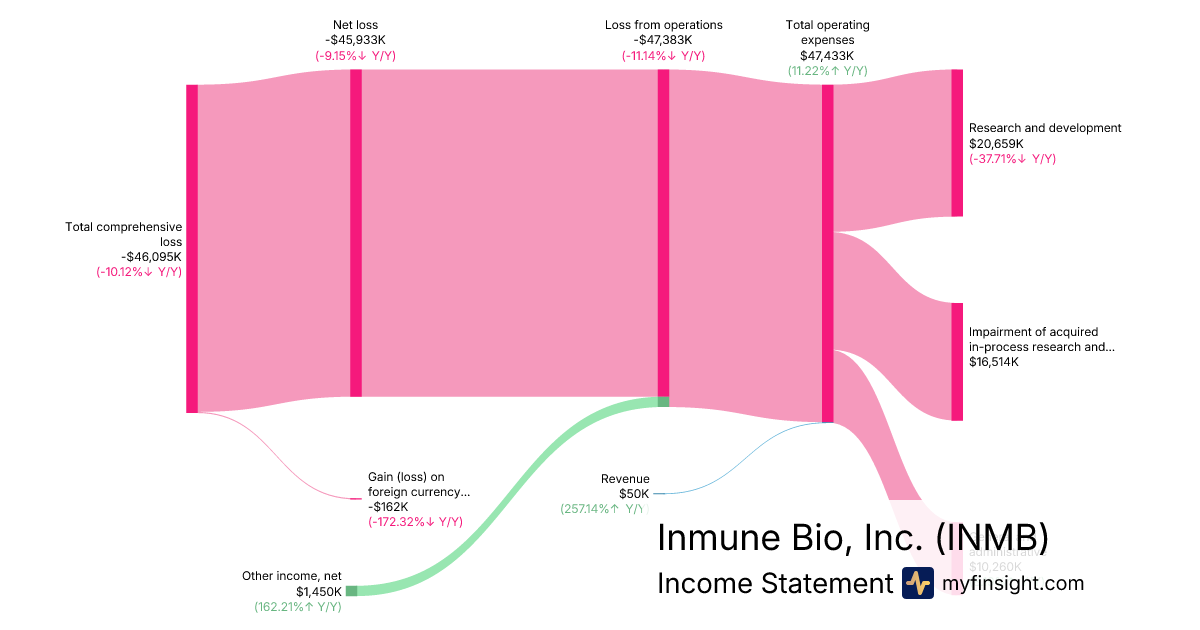 For the year ending 2025-12-31, INMB made $50K in revenue. -$46,095K in net income. Net profit margin of -92190.00%.