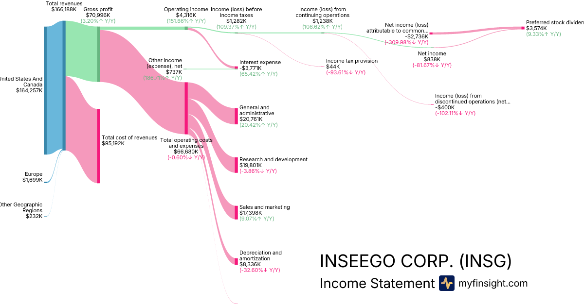 For the year ending 2025-12-31, INSG made $166,188K in revenue. -$2,736K in net income. Net profit margin of -1.65%.