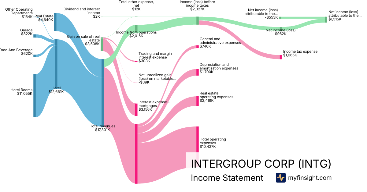 For the quarter ending 2025-12-31, INTG made $17,301K in revenue. $1,515K in net income. Net profit margin of 8.76%.