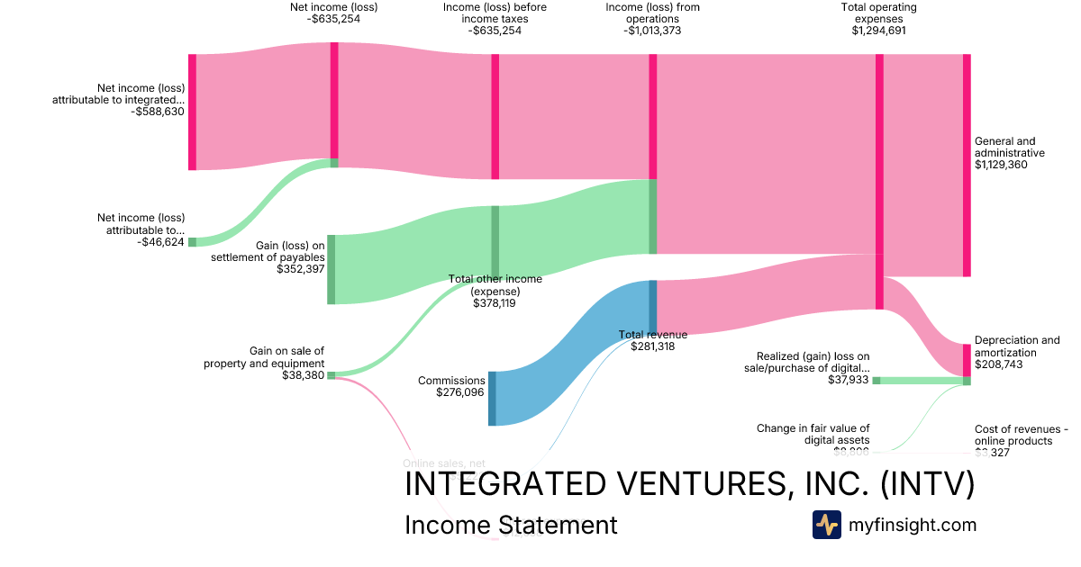 For the quarter ending 2025-03-31, INTV made $281,318 in revenue. -$588,630 in net income. Net profit margin of -209.24%.