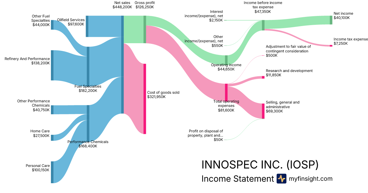 For the year ending 2025-12-31, IOSP made $1,778,000K in revenue. $116,600K in net income. Net profit margin of 6.56%.