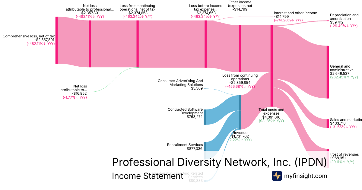 | Net loss attributable to professional diversity network, inc | -2,357,801 | -475,965 | -722,062 | -405,045 |