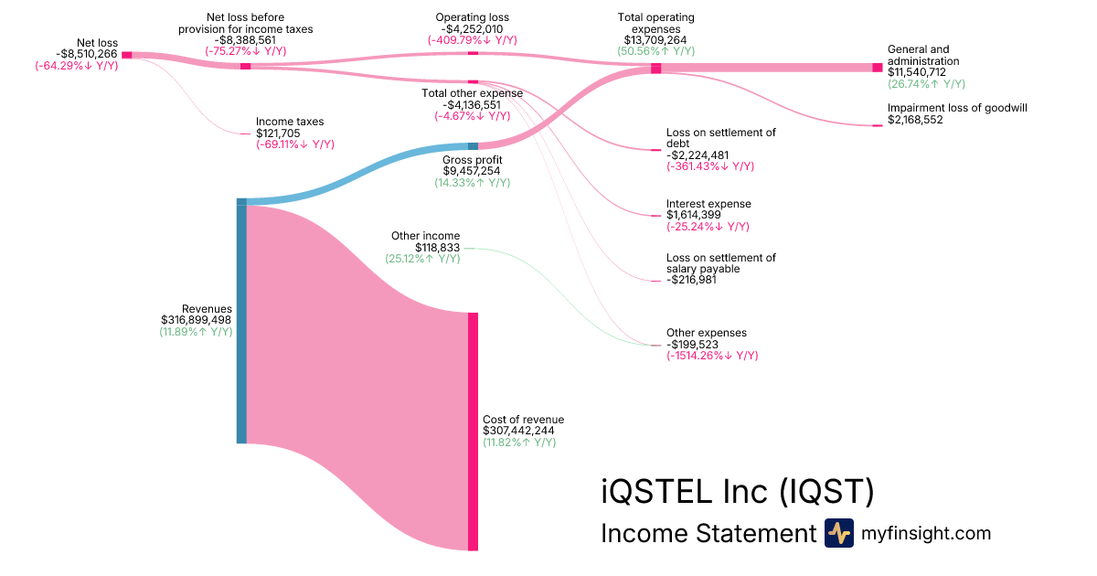 For the year ending 2025-12-31, IQST made $316,899,498 in revenue. -$8,510,266 in net income. Net profit margin of -2.69%.