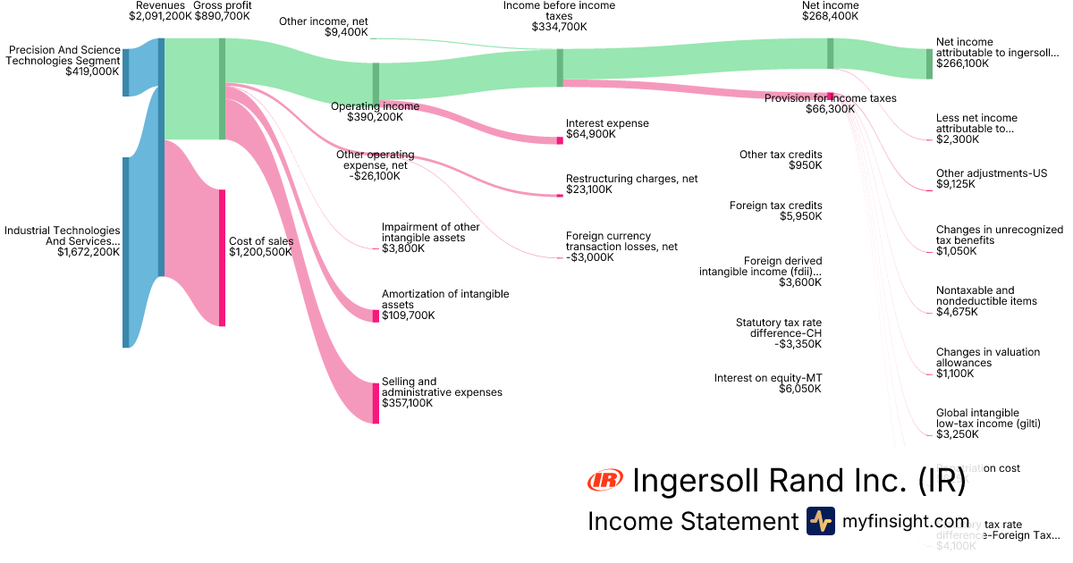 For the year ending 2025-12-31, IR made $7,650,900K in revenue. $581,400K in net income. Net profit margin of 7.60%.