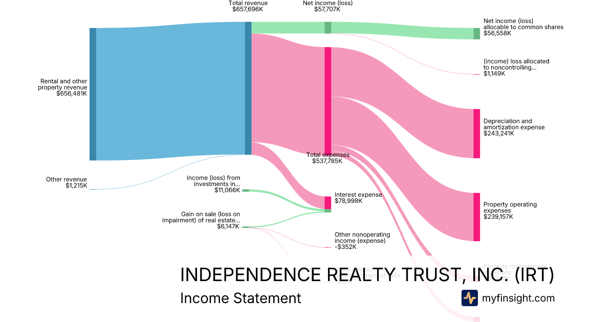 For the year ending 2025-12-31, IRT made $657,696K in revenue. $56,558K in net income. Net profit margin of 8.60%.