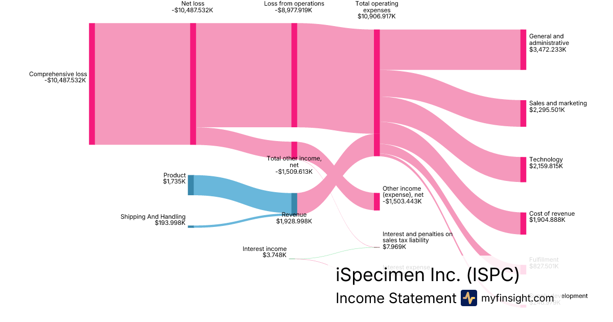 For the year ending 2025-12-31, ISPC made $1,928.998K in revenue. -$10,487.532K in net income. Net profit margin of -543.68%.