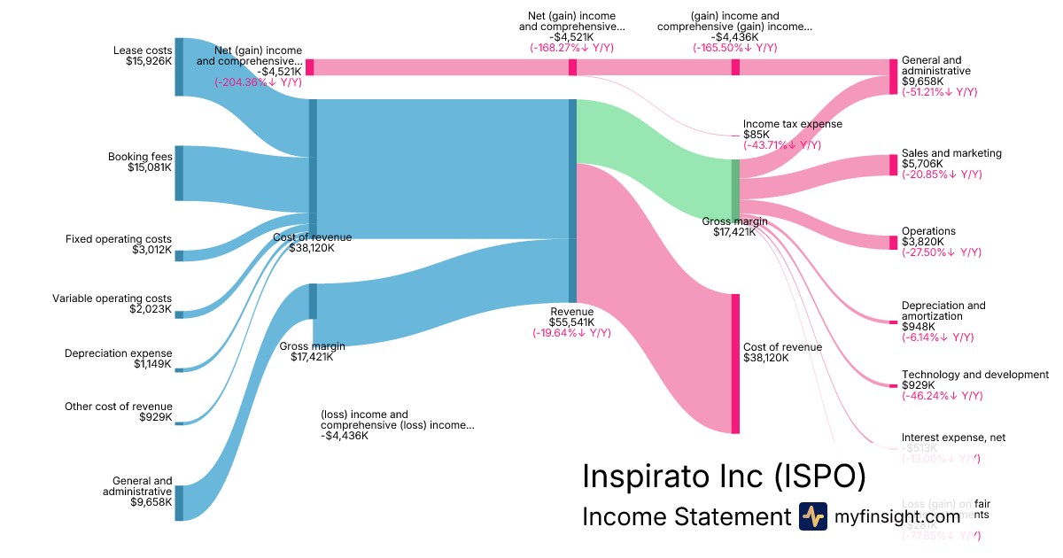 For the quarter ending 2025-09-30, ISPO made $55,541K in revenue. -$4,521K in net income. Net profit margin of -8.14%.