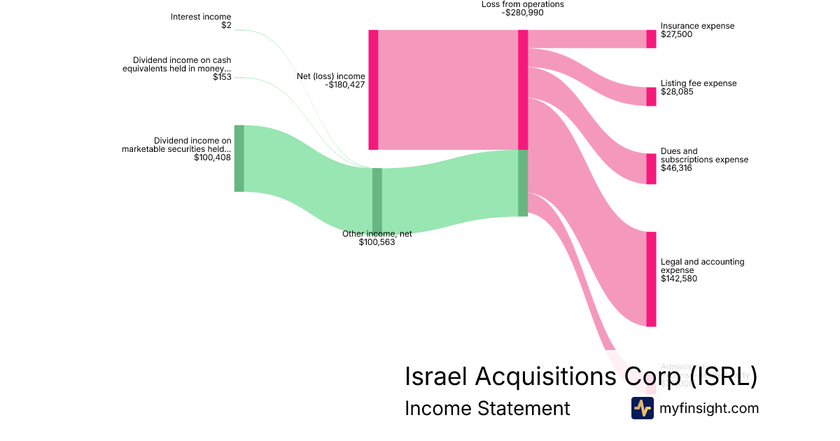 For the quarter ending 2025-09-30, ISRL made $100,563 in revenue. -$180,427 in net income. Net profit margin of -179.42%.