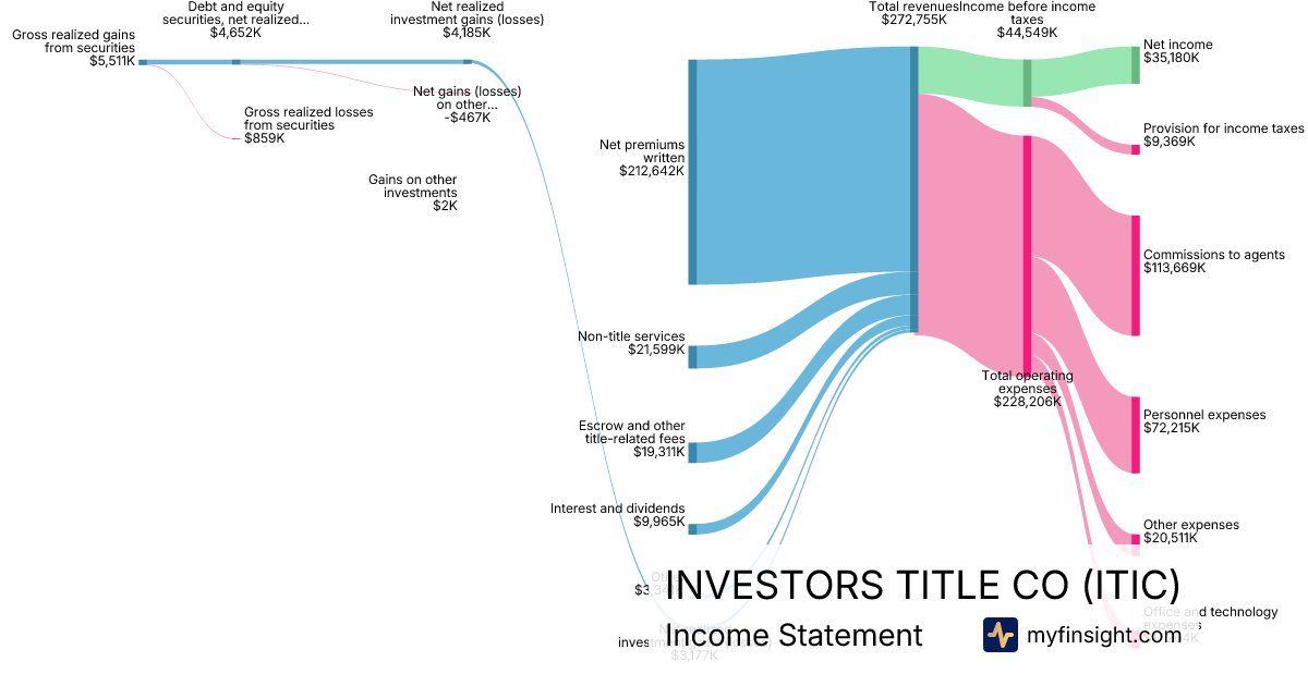For the year ending 2025-12-31, ITIC made $272,755K in revenue. $35,180K in net income. Net profit margin of 12.90%.