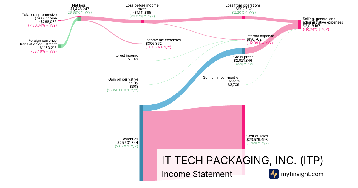 For the quarter ending 2025-09-30, ITP made $25,601,344 in revenue. -$268,035 in net income. Net profit margin of -1.05%.