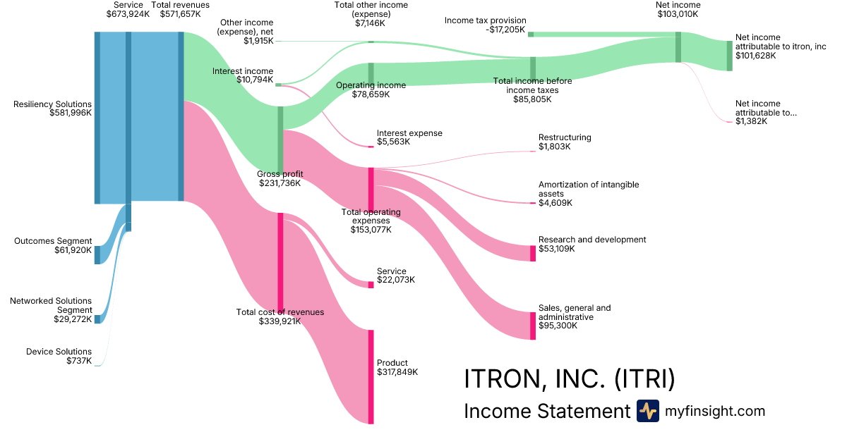 For the year ending 2025-12-31, ITRI made $2,367,194K in revenue. $301,055K in net income. Net profit margin of 12.72%.