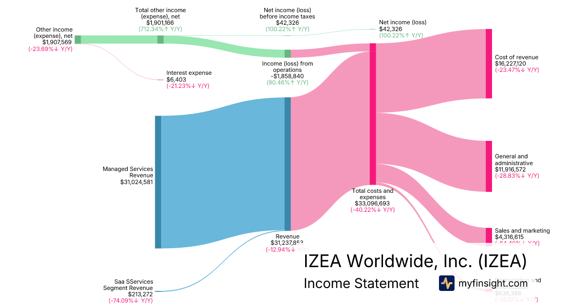 For the year ending 2025-12-31, IZEA made $31,237,853 in revenue. $42,326 in net income. Net profit margin of 0.14%.