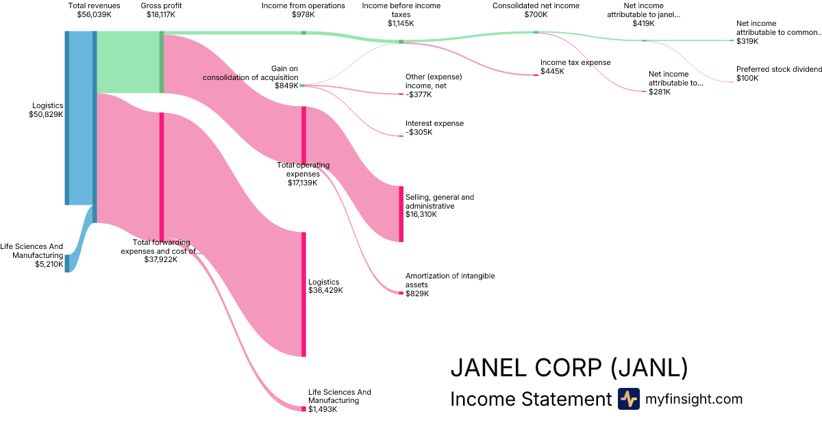 For the quarter ending 2025-12-31, JANL made $56,039K in revenue. $319K in net income. Net profit margin of 0.57%.
