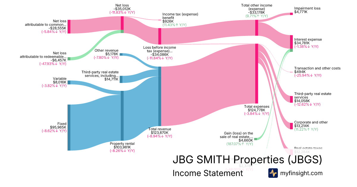 For the quarter ending 2025-09-30, JBGS made $123,870K in revenue. -$28,555K in net income. Net profit margin of -23.05%.