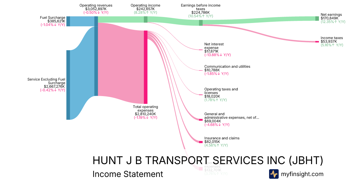 For the quarter ending 2025-09-30, JBHT made $3,052,897K in revenue. $170,849K in net income. Net profit margin of 5.60%.