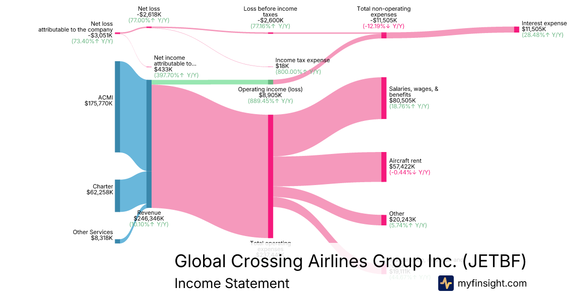 For the year ending 2025-12-31, JETBF made $246,346K in revenue. -$3,051K in net income. Net profit margin of -1.24%.