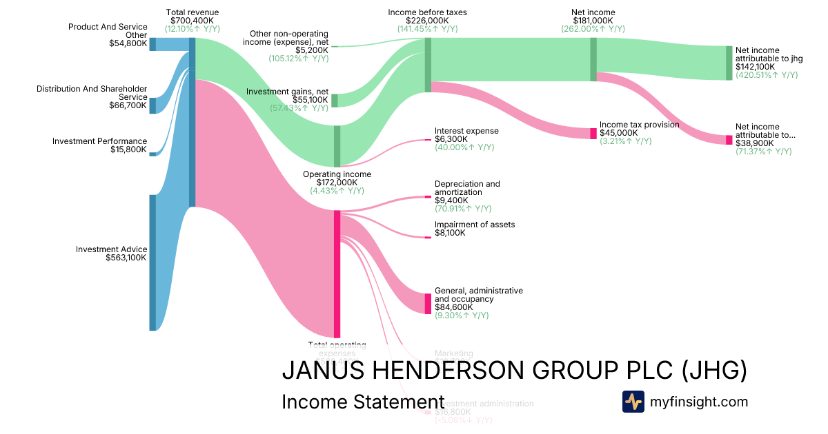 For the quarter ending 2025-09-30, JHG made $700.4M in revenue. $142.1M in net income. Net profit margin of 20.29%.