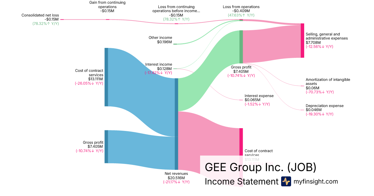 For the quarter ending 2025-12-31, JOB made $20.516M in revenue. -$0.15M in net income. Net profit margin of -0.73%.
