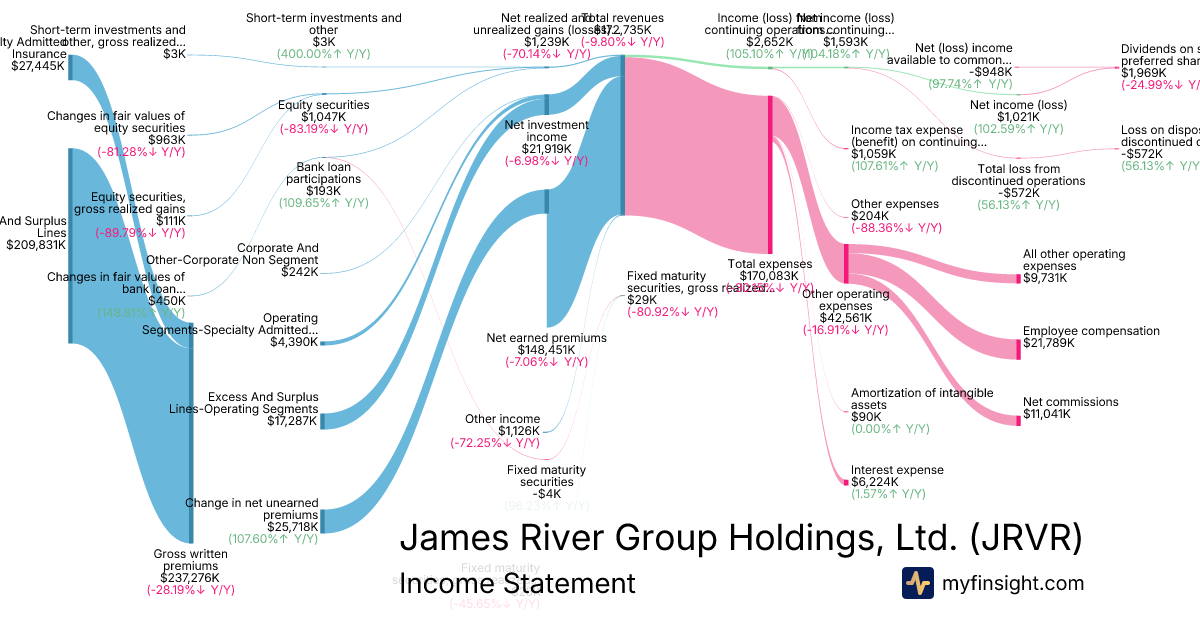 For the quarter ending 2025-09-30, JRVR made $385,583K in revenue. -$948K in net income. Net profit margin of -0.25%.
