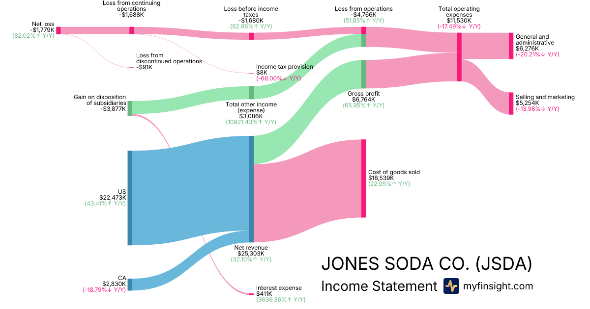 For the year ending 2025-12-31, JSDA made $25,303K in revenue. -$1,779K in net income. Net profit margin of -7.03%.