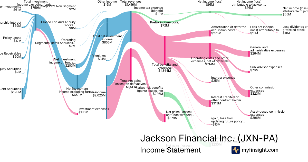 For the quarter ending 2025-09-30, JXN-PA made $1,416M in revenue. $65M in net income. Net profit margin of 4.59%.