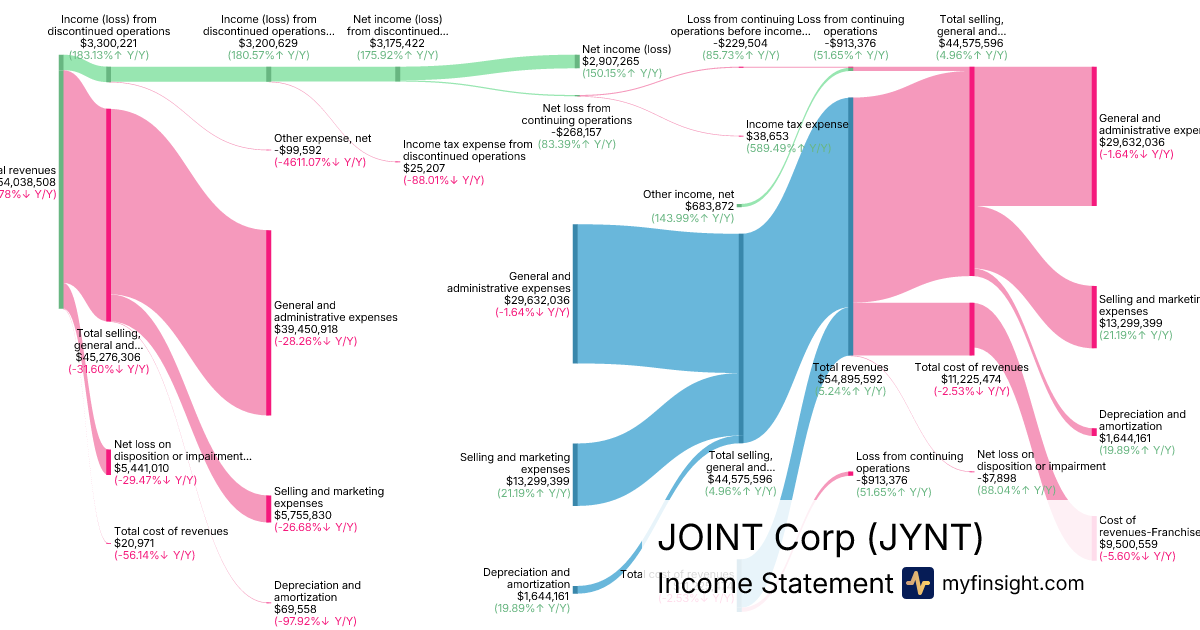 For the year ending 2025-12-31, JYNT made $54,895,592 in revenue. $2,907,265 in net income. Net profit margin of 5.30%.