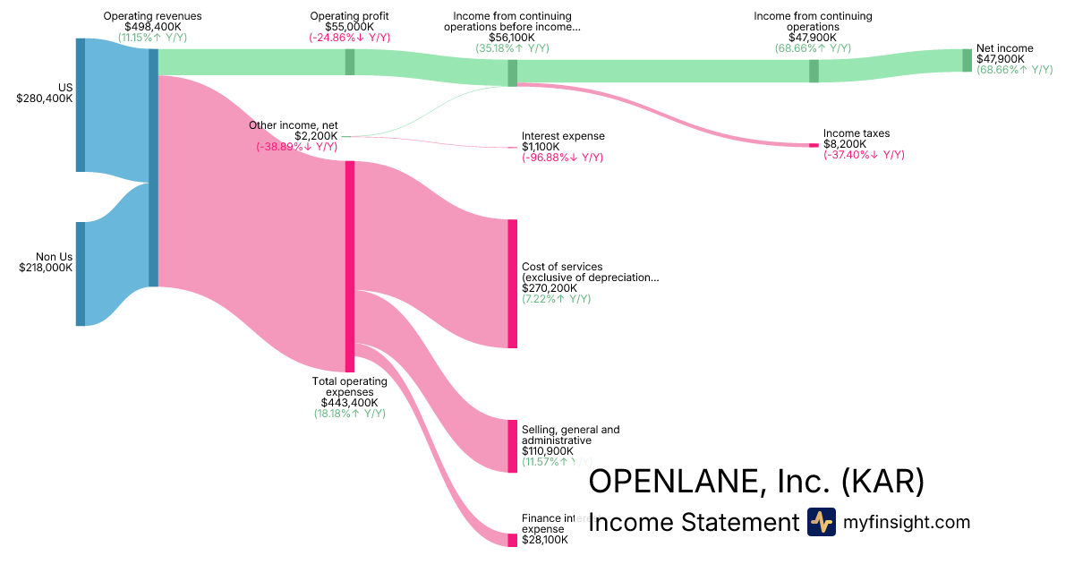 For the quarter ending 2025-09-30, KAR made $498,400K in revenue. $47,900K in net income. Net profit margin of 9.61%.