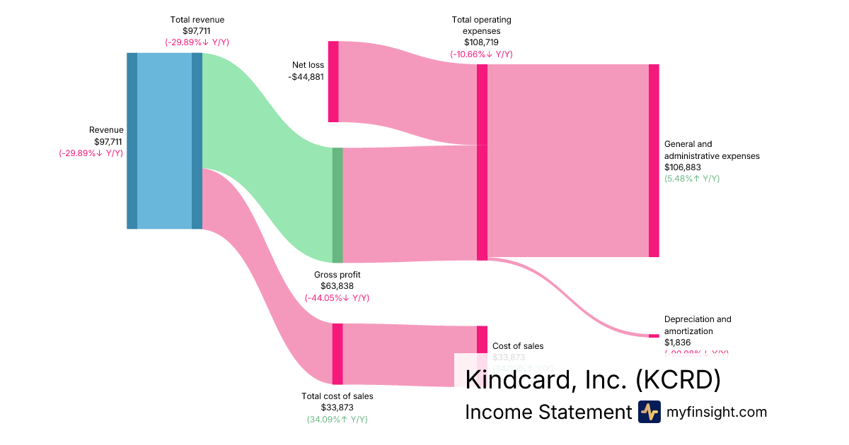For the quarter ending 2025-10-31, KCRD made $97,711 in revenue. -$44,881 in net income. Net profit margin of -45.93%.