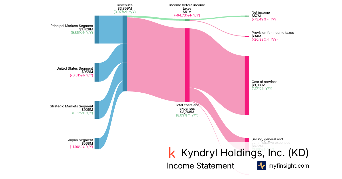 For the quarter ending 2025-12-31, KD made $3,859M in revenue. $57M in net income. Net profit margin of 1.48%.