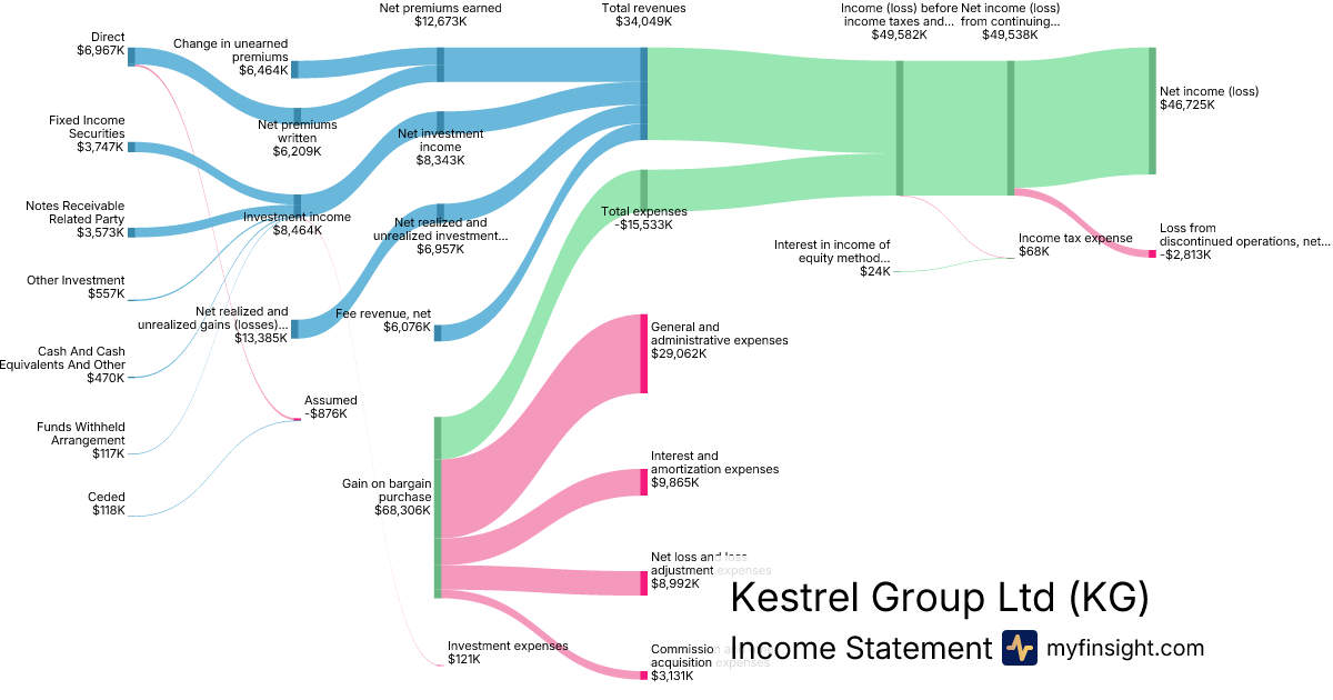 For the year ending 2025-12-31, KG made $34,049K in revenue. $46,725K in net income. Net profit margin of 137.23%.