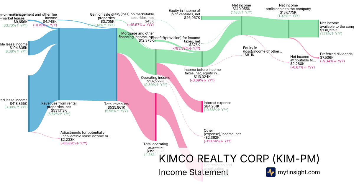For the quarter ending 2025-09-30, KIM-PM made $535,861K in revenue. $130,239K in net income. Net profit margin of 24.30%.