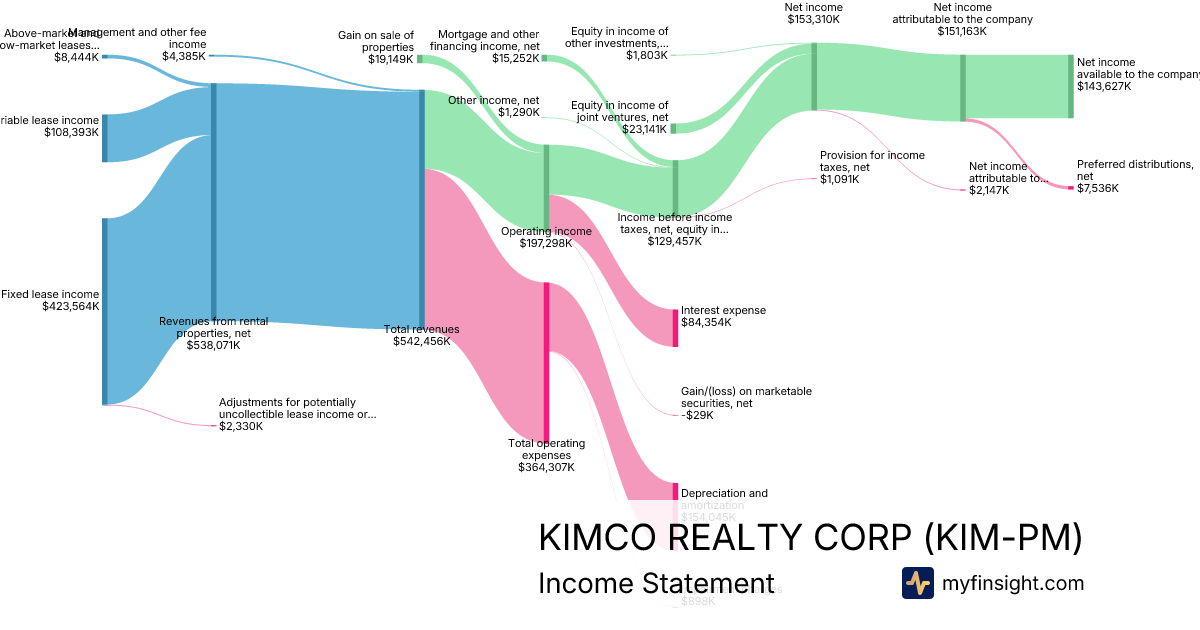 For the year ending 2025-12-31, KIM-PM made $2,140,116K in revenue. $554,430K in net income. Net profit margin of 25.91%.