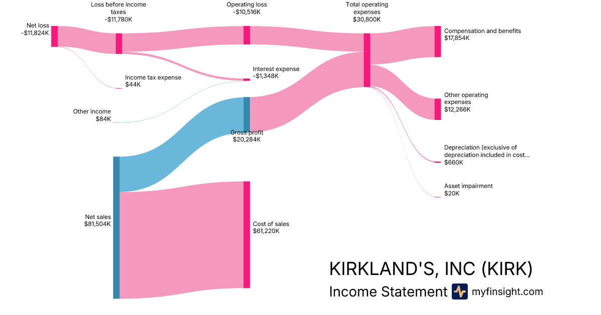 For the quarter ending 2025-05-03, KIRK made $81,504K in revenue. -$11,824K in net income. Net profit margin of -14.51%.