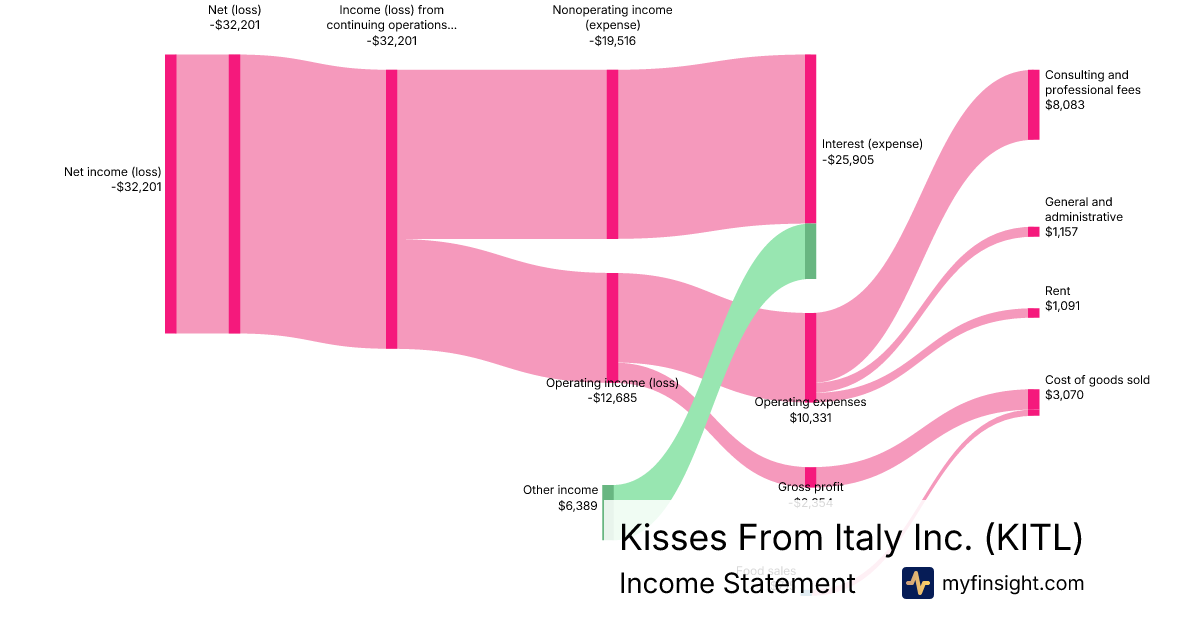 For the quarter ending 2024-09-30, KITL made $715 in revenue. -$32,201 in net income. Net profit margin of -4503.64%.