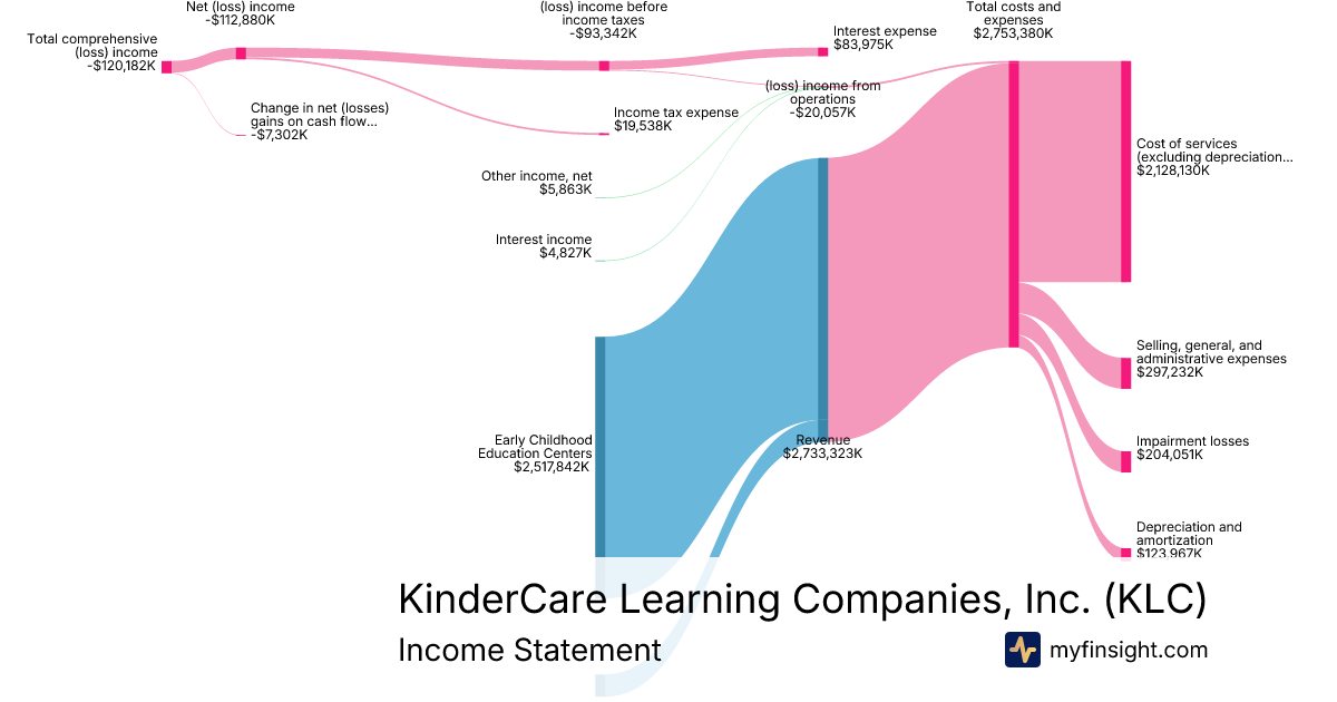 For the year ending 2026-01-03, KLC made $2,733,323K in revenue. -$120,182K in net income. Net profit margin of -4.40%.