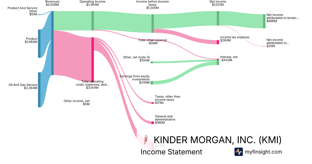 For the year ending 2025-12-31, KMI made $16,937M in revenue. $3,056M in net income. Net profit margin of 18.04%.