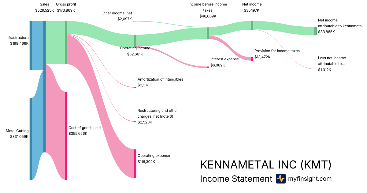 For the quarter ending 2025-12-31, KMT made $529,525K in revenue. $33,885K in net income. Net profit margin of 6.40%.