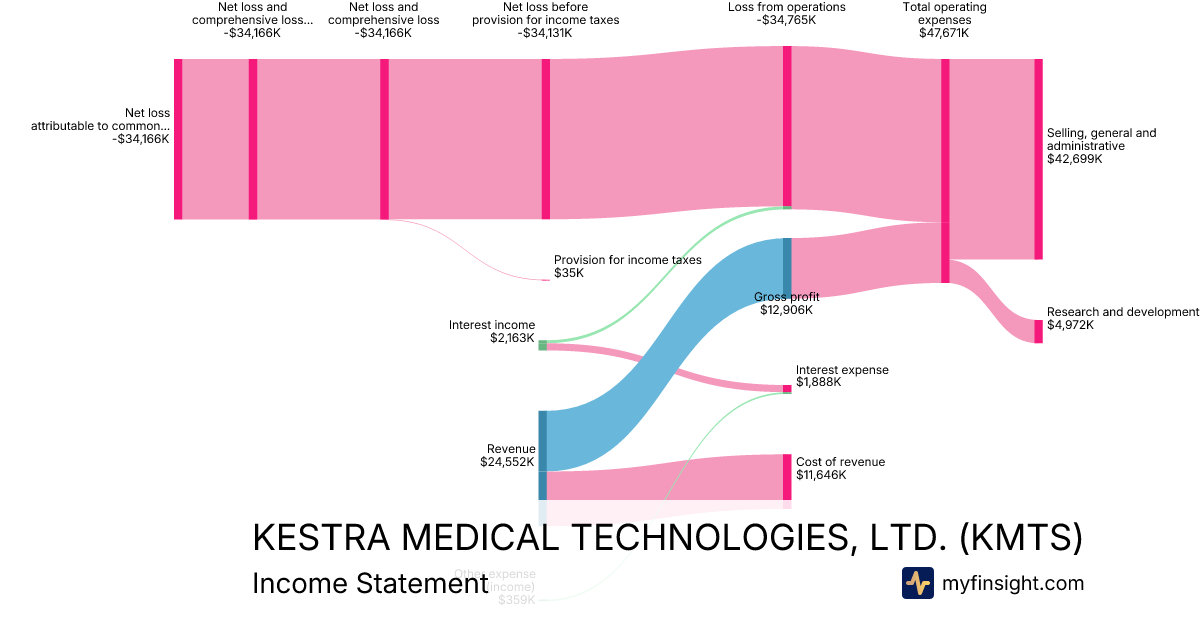 For the quarter ending 2026-01-31, KMTS made $24,552K in revenue. -$34,166K in net income. Net profit margin of -139.16%.