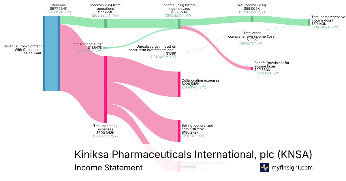 For the year ending 2025-12-31, KNSA made $677,564K in revenue. $59,143K in net income. Net profit margin of 8.73%.