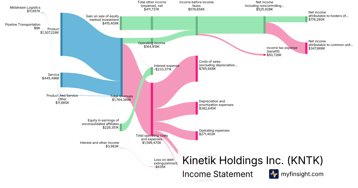 For the year ending 2025-12-31, KNTK made $1,764,389K in revenue. $178,260K in net income. Net profit margin of 10.10%.
