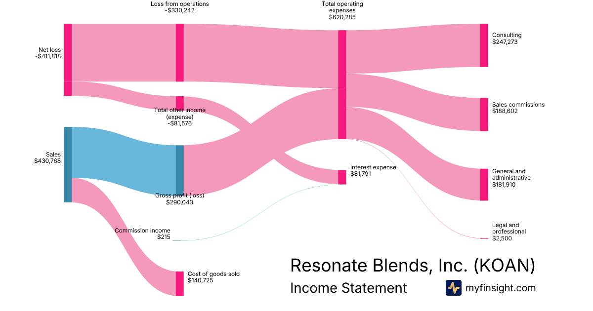 For the quarter ending 2025-03-31, KOAN made $430,768 in revenue. -$411,818 in net income. Net profit margin of -95.60%.