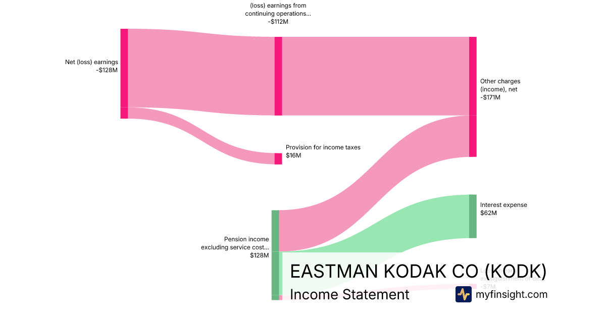 For the year ending 2025-12-31, KODK made $1,069M in revenue. -$128M in net income. Net profit margin of -11.97%.